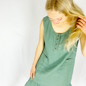 Comfortable V-neck Linen Dress with Short Sleeve and Tie-Back Detail CATALINA /Nursing dress with wooden buttons /Mama Dress /Christmas Gift