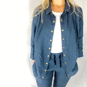 Puffy sleeve linen top, Balloon sleeve linen blouse, loose-fit women top, linen shirt POET, 100% Linen Shirt with buttons, Mothers Day Gift