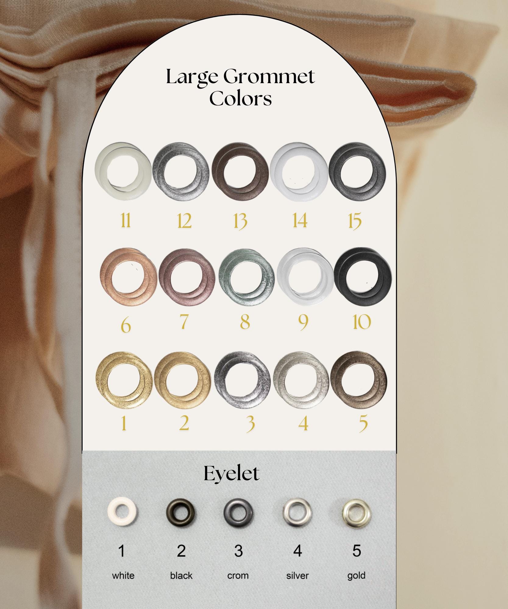 2)Grommet color if you choose the grommet as a heading style option