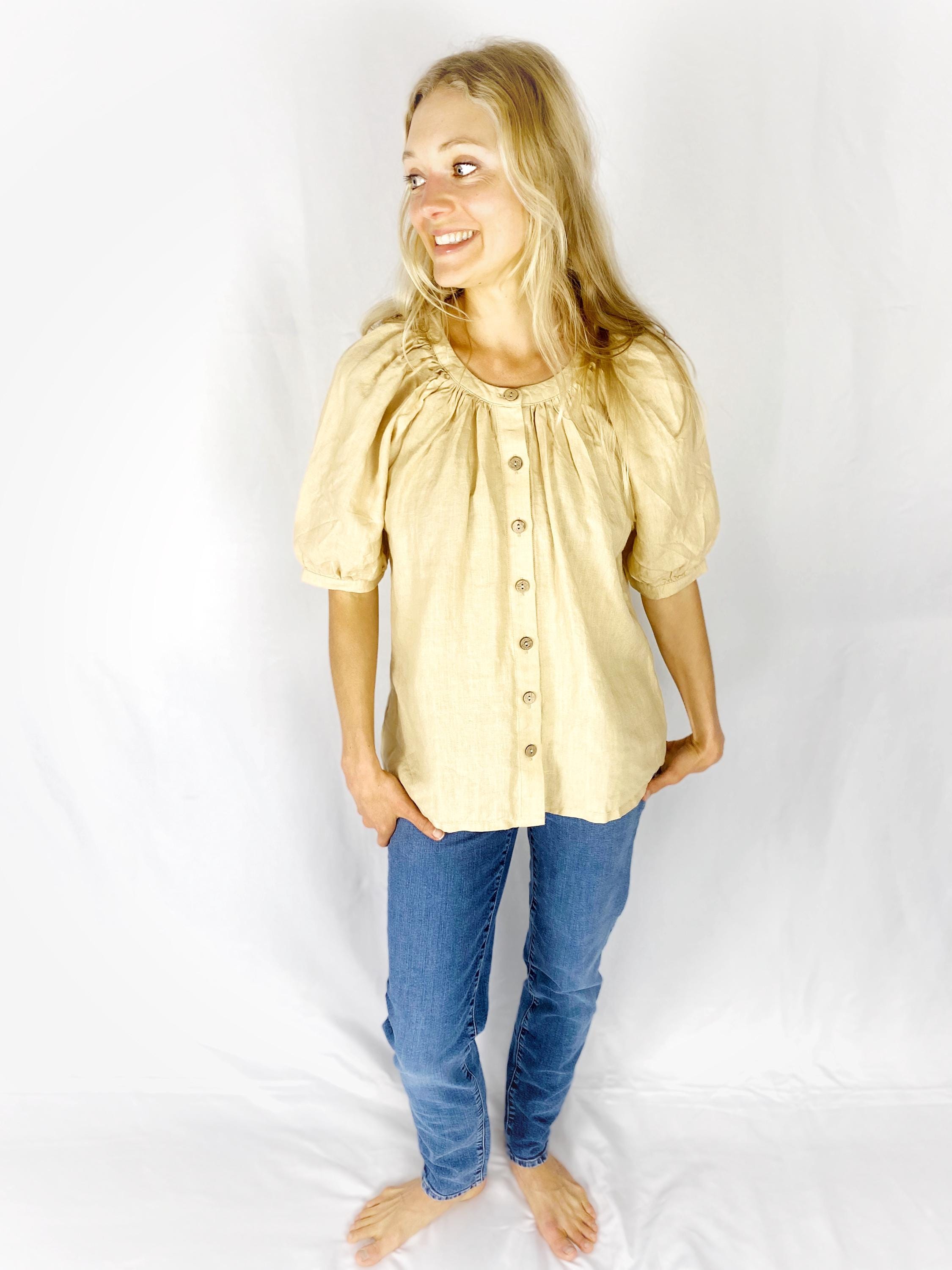 Puffy sleeve linen top, Balloon sleeve linen blouse, loose-fit women top, linen shirt POET, 100% Linen Shirt with buttons, Mothers Day Gift