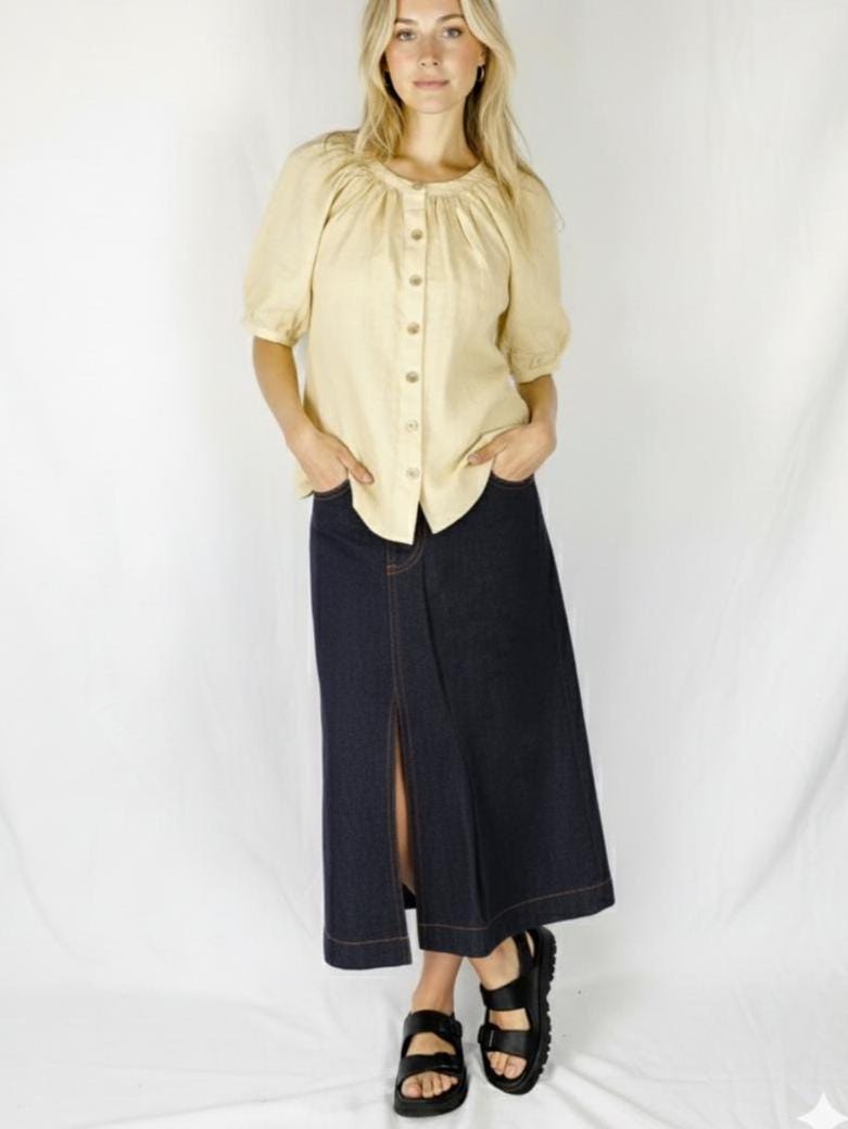 Linen Shirt with Pouff Sleeves