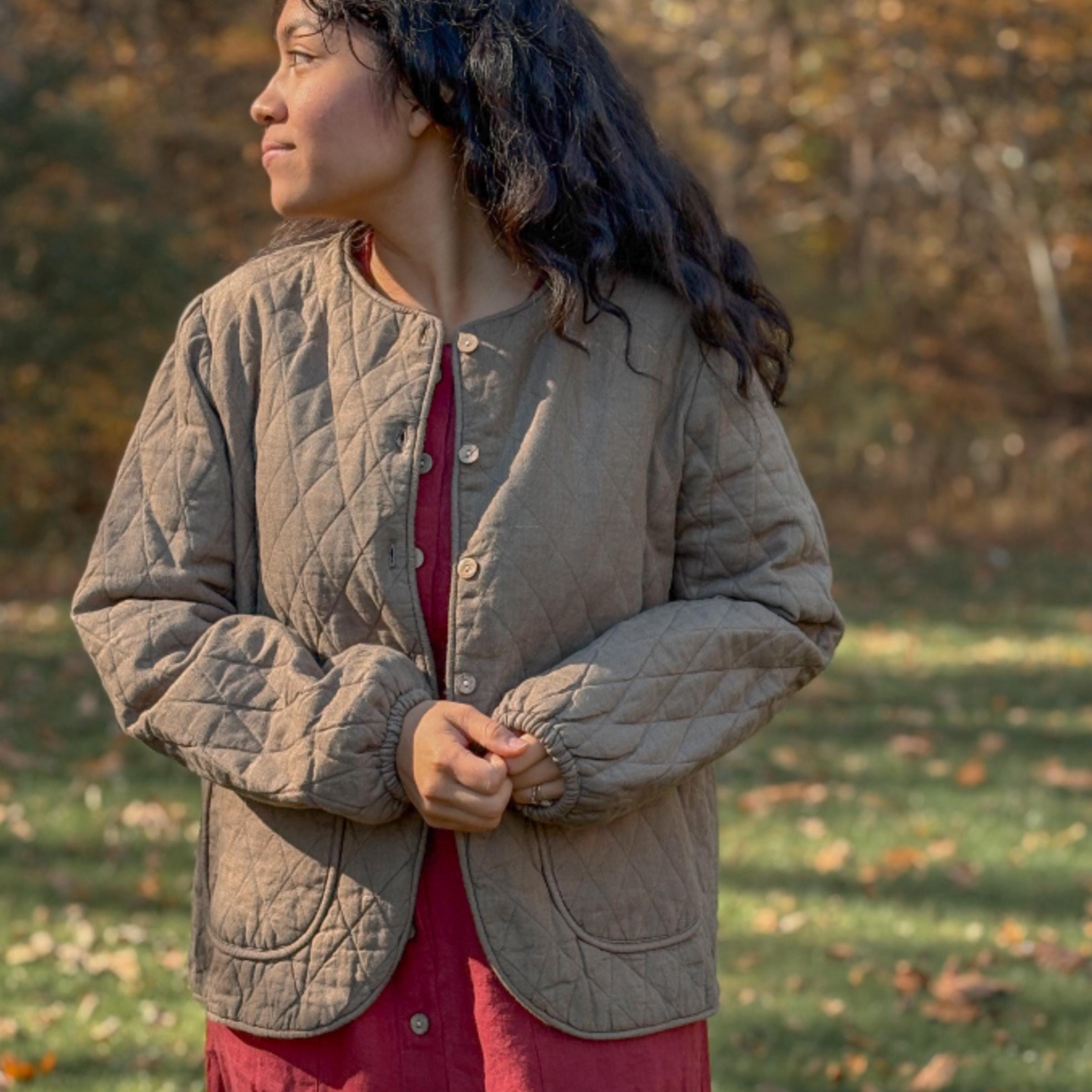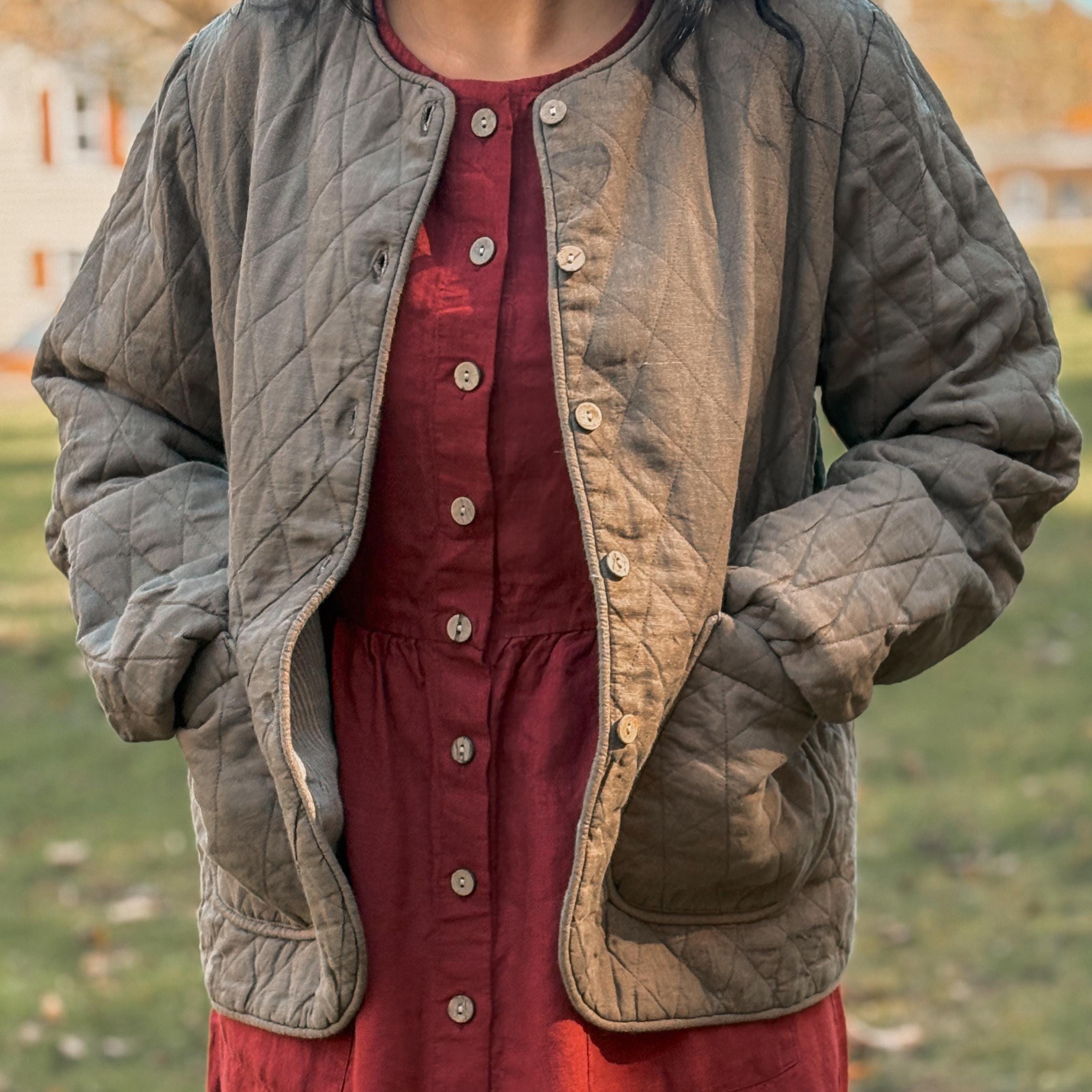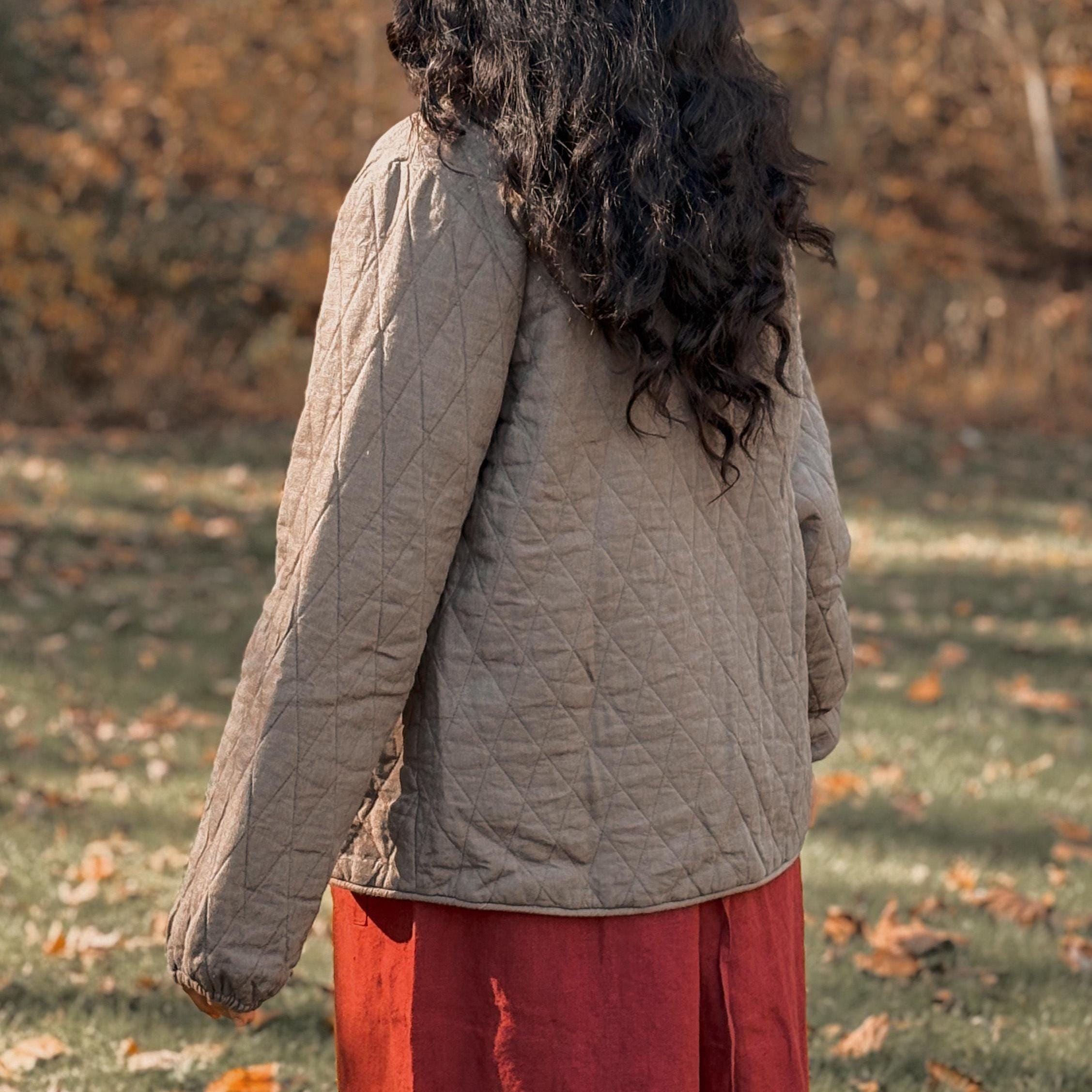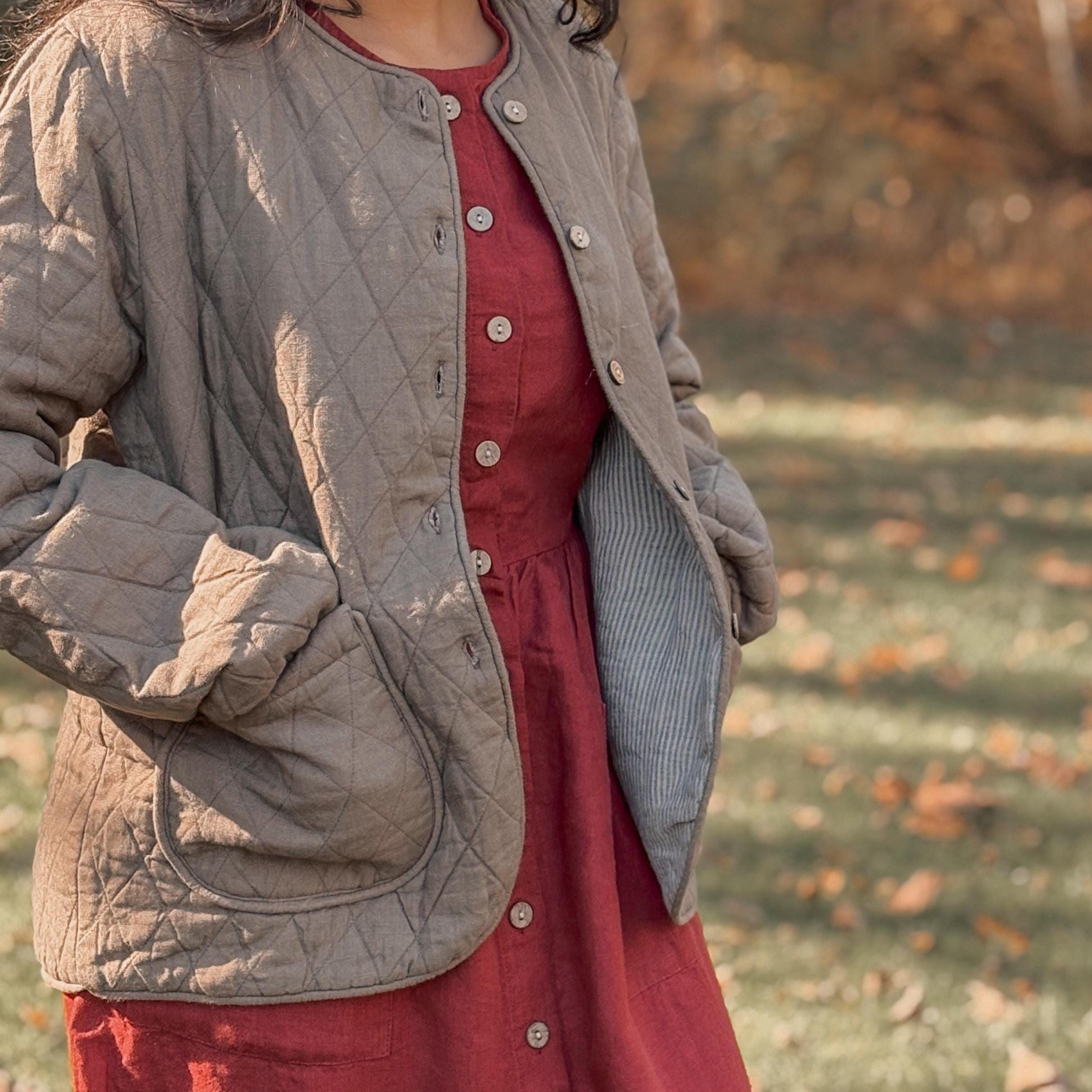 Washed linen quilted jacket Linen padding jacket organic quilted coat linen women clothing Linen Fall Outfit Christmas Gift dress_124