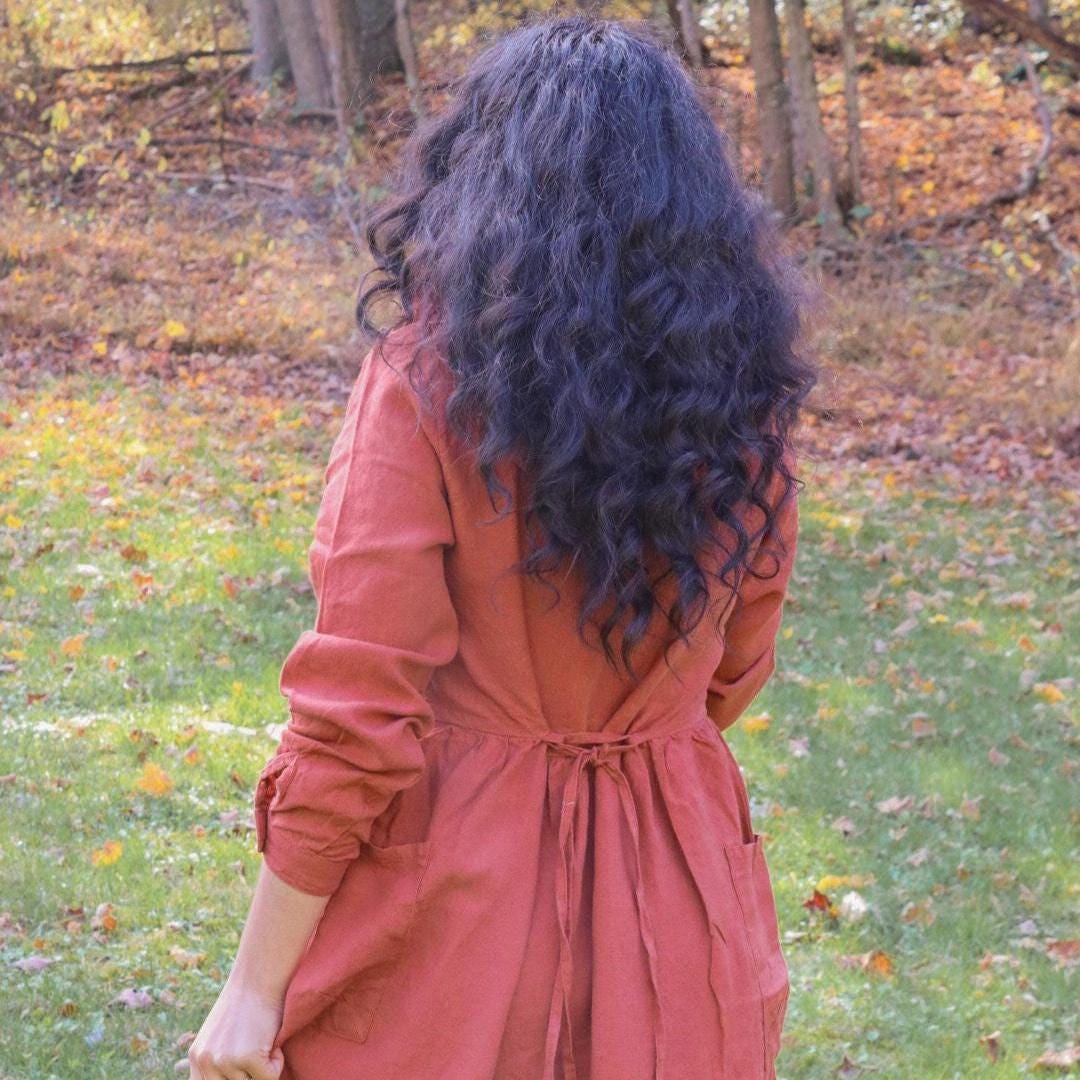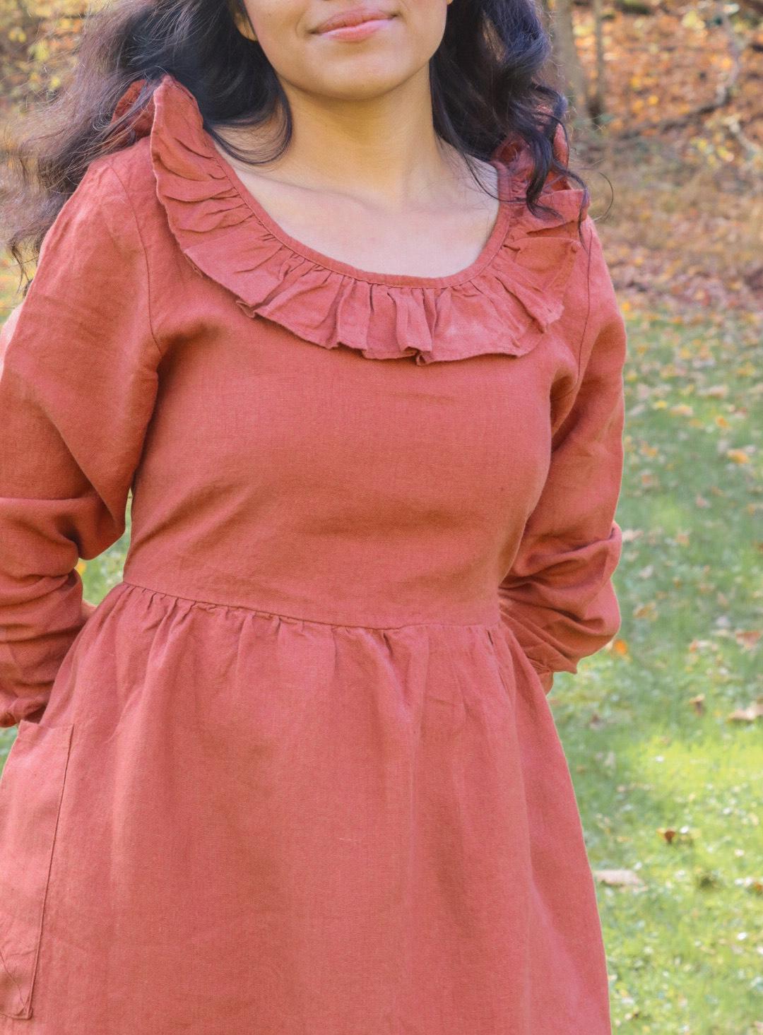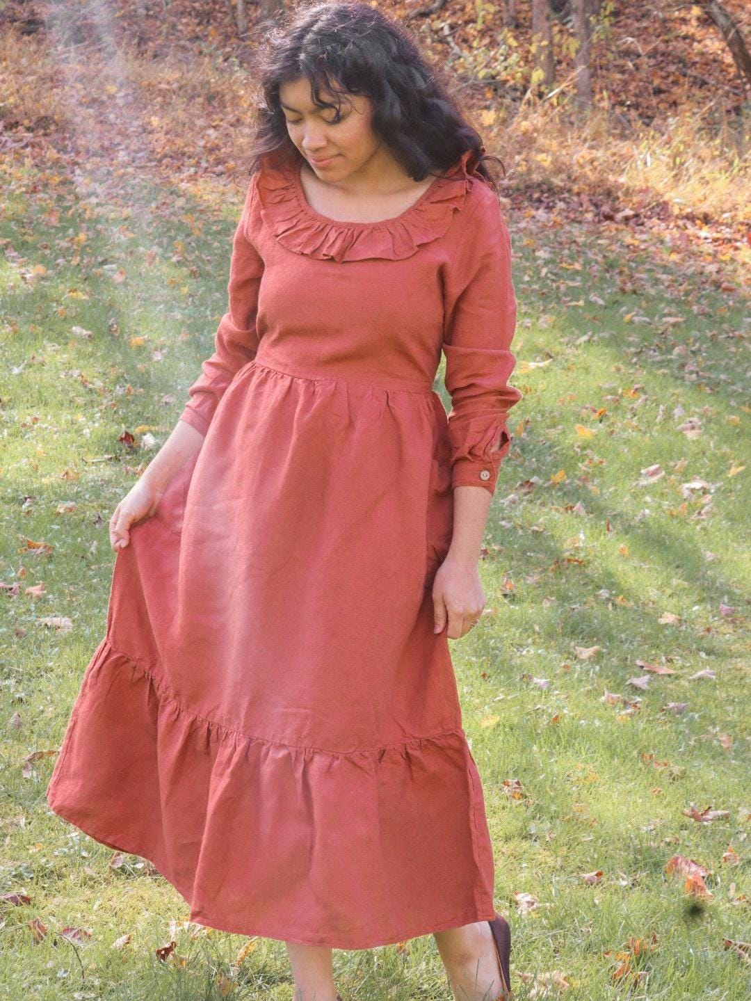 Linen Fall Dress with Hidden Pockets Linen Boho Dress with Long Sleeves Linen Christmas Gift for her Mom Gift Linen women Clothing dress_109